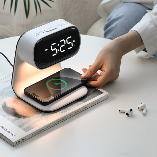 Modern Multifunctional Wireless Charging Pad + LED Lamp + Display Clock (5 - 9 Working Days Delivery)