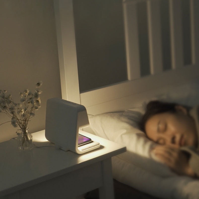 - Features: Night Lamp, Alarm + Display Clock, 5W Wireless Qi Charging, Temperature Display, Adjustable Brightness